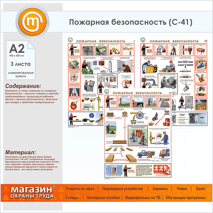 Плакаты «Пожарная безопасность» (С-41, ламинированная бумага, А2, 3 листа) в Волгограде купить