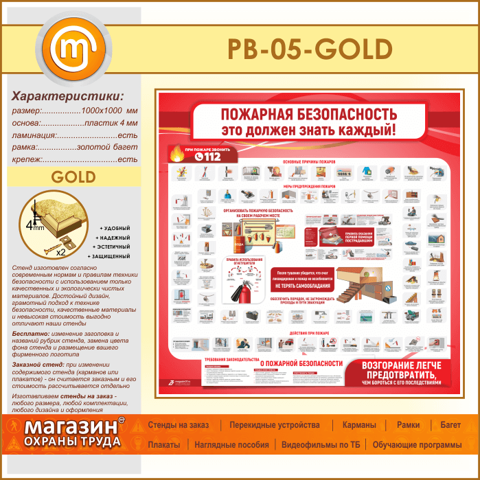 Стенд «Пожарная безопасность. Это должен знать каждый» (PB-05-GOLD) в Волгограде купить