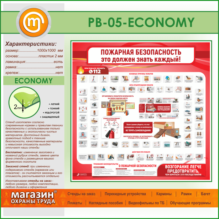 Стенд «Пожарная безопасность. Это должен знать каждый» (PB-05-ECONOMY) в Волгограде купить
