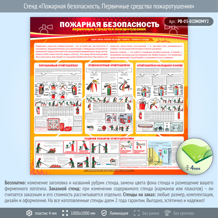 Стенд «Пожарная безопасность. Первичные средства пожаротушения» (PB-03-ECONOMY2) в Волгограде купить