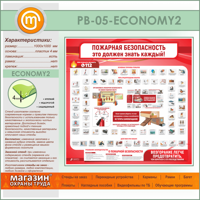 Стенд «Пожарная безопасность. Это должен знать каждый» (PB-05-ECONOMY2) в Волгограде купить