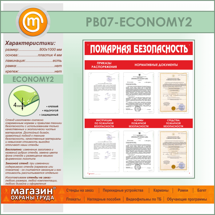 Стенд «Пожарная безопасность» с 6 карманами (PB-07-ECONOMY2) в Волгограде купить