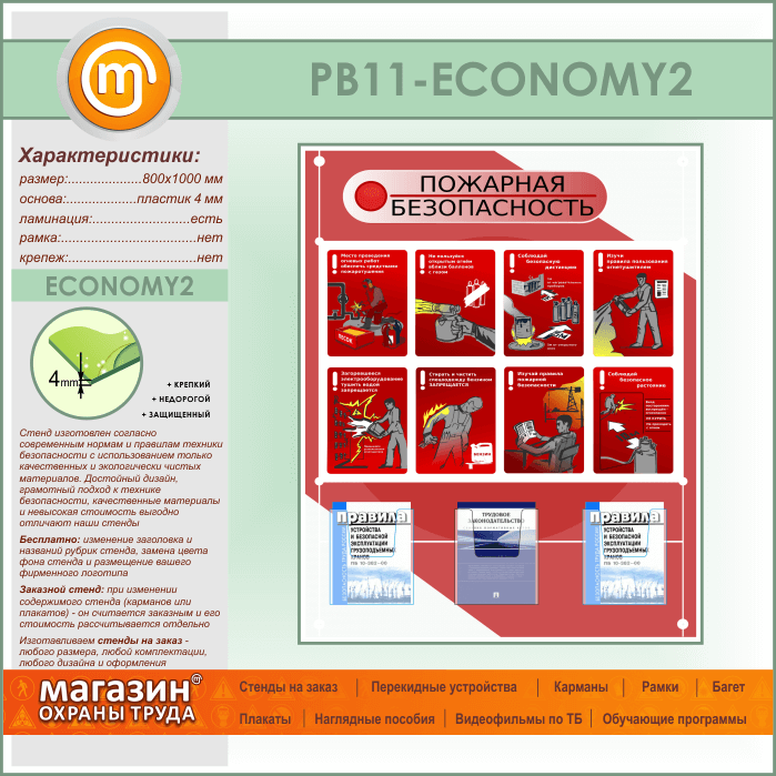 Стенд «Стенд пожарная безопасность в строительстве» с 3 объемными карманами (PB-11-ECONOMY2) в Волгограде купить