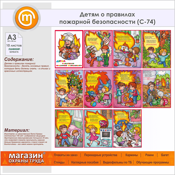 Плакаты «Детям о правилах пожарной безопасности» (С-74, ламинированная бумага, А3, 10 листов) в Волгограде купить