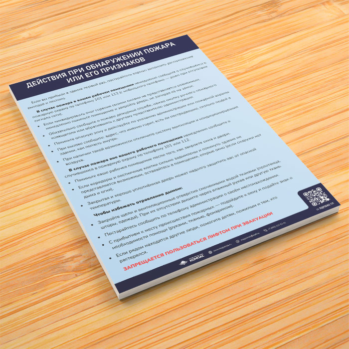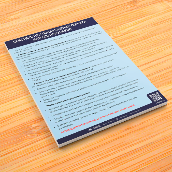 Плакат «Инструкция при обнаружении пожара или его признаков» (М-11, ламинированная бумага, А4, 1 лист) в Волгограде купить