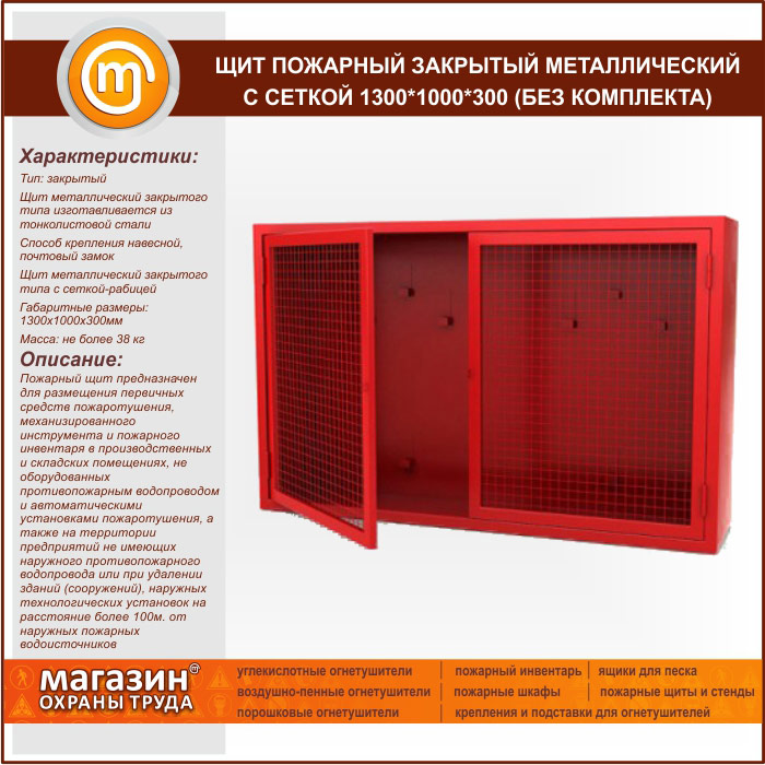 Щит пожарный закрытый металлический с сеткой 1300*1000*300 (без комплекта) в Волгограде купить