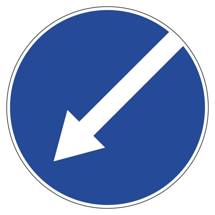 Дорожный знак 4.2.2 «Объезд препятствия слева» (металл 0,8 мм, II типоразмер: диаметр 700 мм, С/О пленка: тип А инженерная) в Волгограде купить
