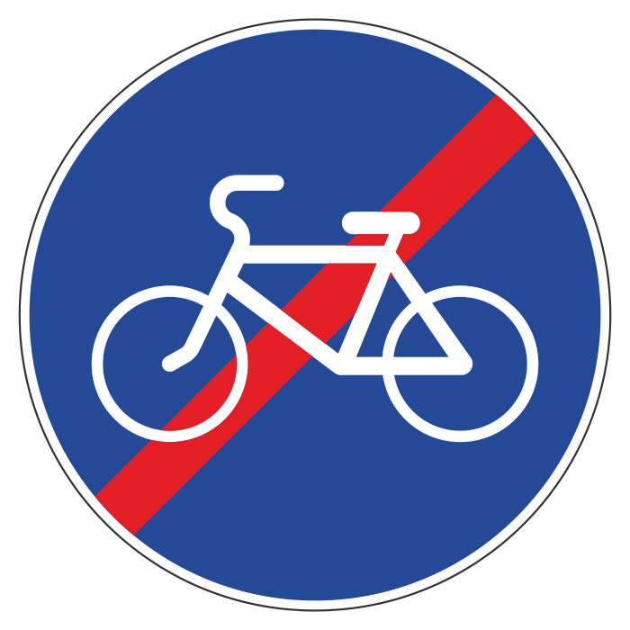 Дорожный знак 4.4.2 «Конец велосипедной дорожки или полосы для велосипедистов» (металл 0,8 мм, II типоразмер: диаметр 700 мм, С/О пленка: тип А инженерная) в Волгограде купить