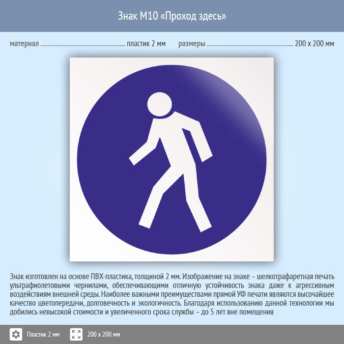 Знак M10 «Проход здесь» (пластик, 200х200 мм) в Волгограде купить