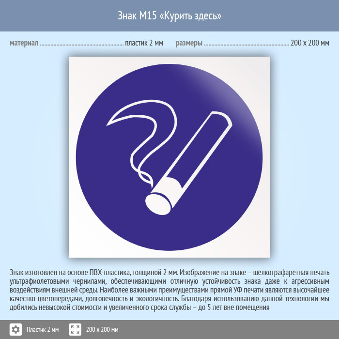 Знак M15 «Курить здесь» (исключен) (пластик, 200х200 мм) в Волгограде купить
