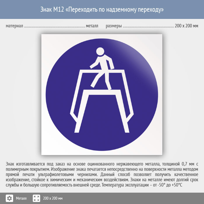Знак M12 «Переходить по надземному переходу» (металл, 200х200 мм) в Волгограде купить