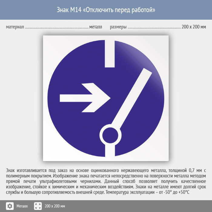Знак M14 «Отключить перед работой» (металл, 200х200 мм) в Волгограде купить