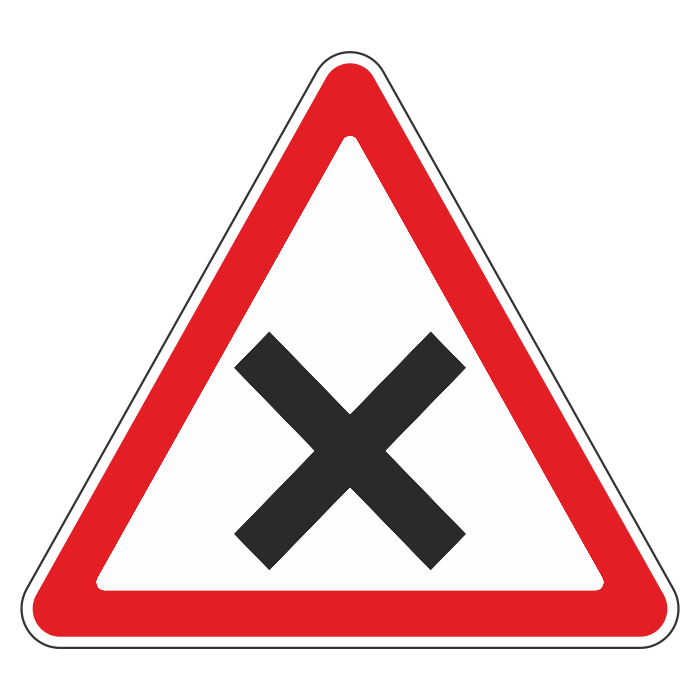 Дорожный знак 1.6 «Пересечение равнозначных дорог» (металл 0,8 мм, I типоразмер: сторона 700 мм, С/О пленка: тип А инженерная) в Волгограде купить