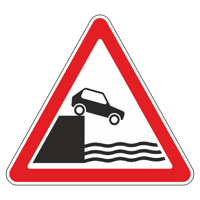 Дорожный знак 1.10 «Выезд на набережную» (металл 0,8 мм, II типоразмер: сторона 900 мм, С/О пленка: тип А коммерческая) в Волгограде купить