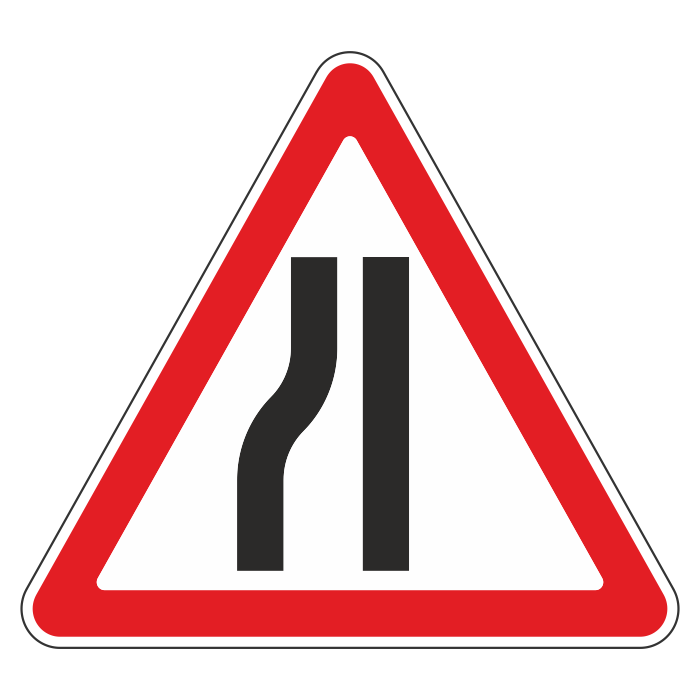 Дорожный знак 1.20.3 «Сужение дороги» (металл 0,8 мм, II типоразмер: сторона 900 мм, С/О пленка: тип А инженерная) в Волгограде купить