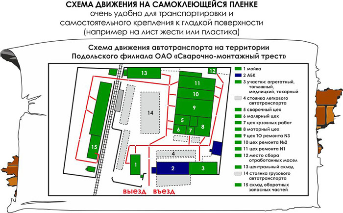 Схема движения автотранспорта (2000х1000 мм, самоклеящаяся плёнка) в Волгограде купить