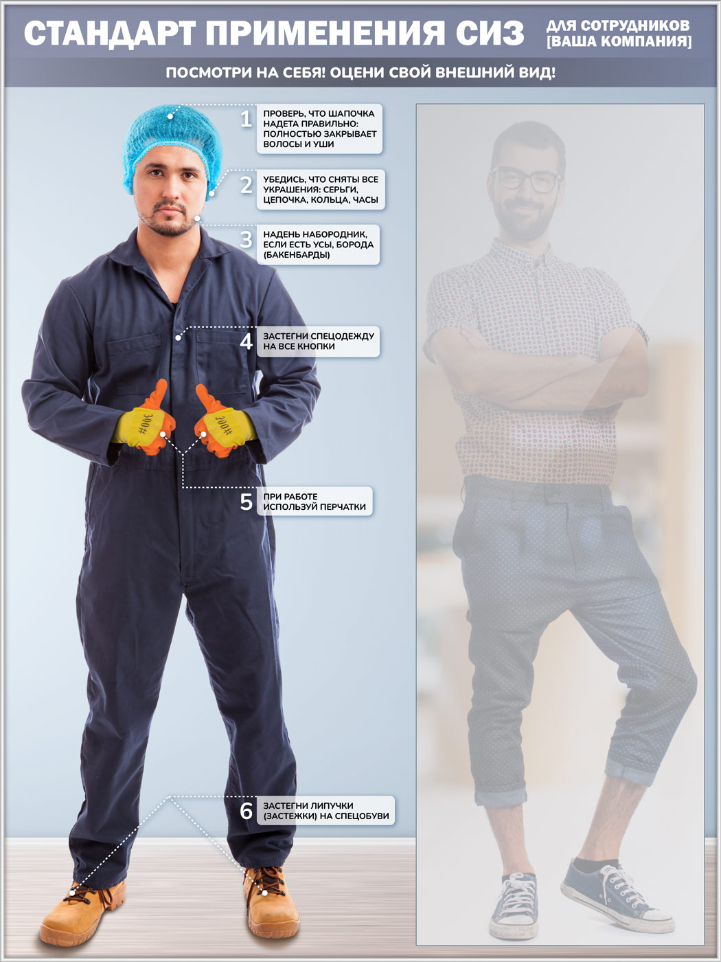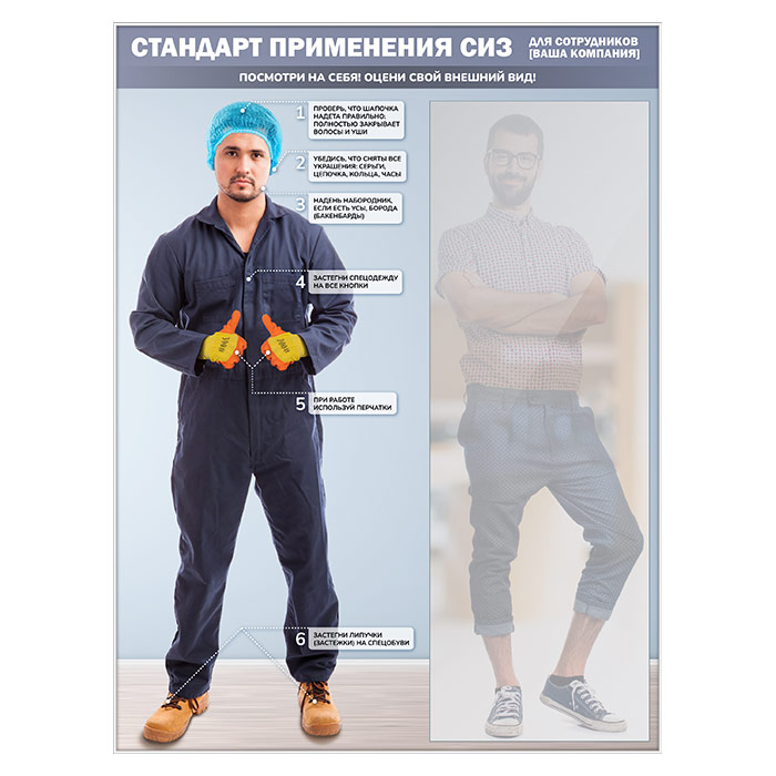 Стенд для демонстрации применения СИЗ с зеркалом, 1500х2000 мм в серебряном багете (СПС-02-С) в Волгограде купить