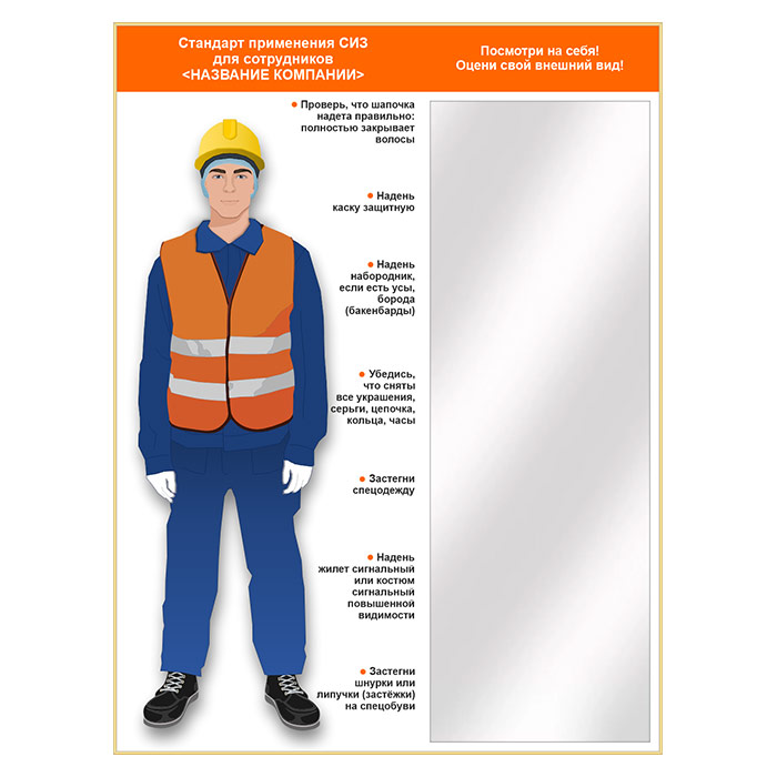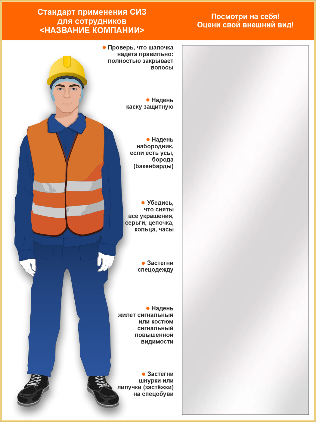 Стенд для демонстрации применения СИЗ с зеркалом, 1500х2000 мм в золотом багете (СПС-02.2-З) в Волгограде купить