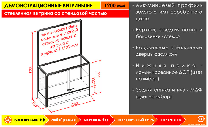 Стеклянная витрина со стендовой частью, 1200 мм в Волгограде купить