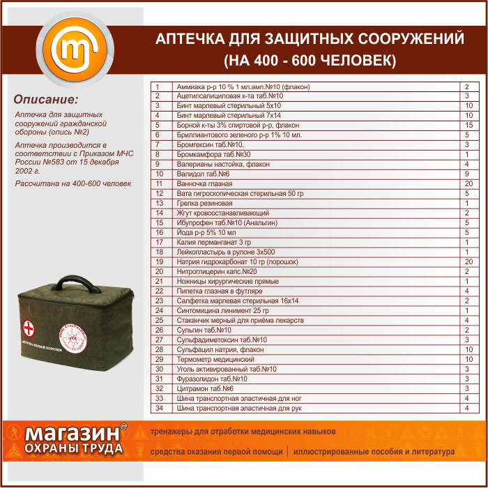 Аптечка для Защитных Сооружений (на 400 - 600 человек) - сумка в Волгограде купить