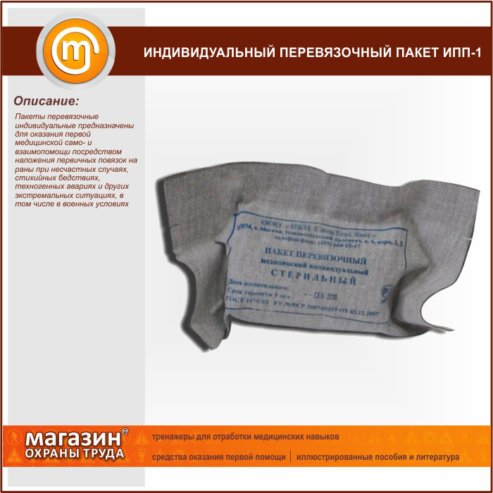 Индивидуальный перевязочный пакет ИПП-1 | Индивидуальный перевязочный пакет ИПП-1 |