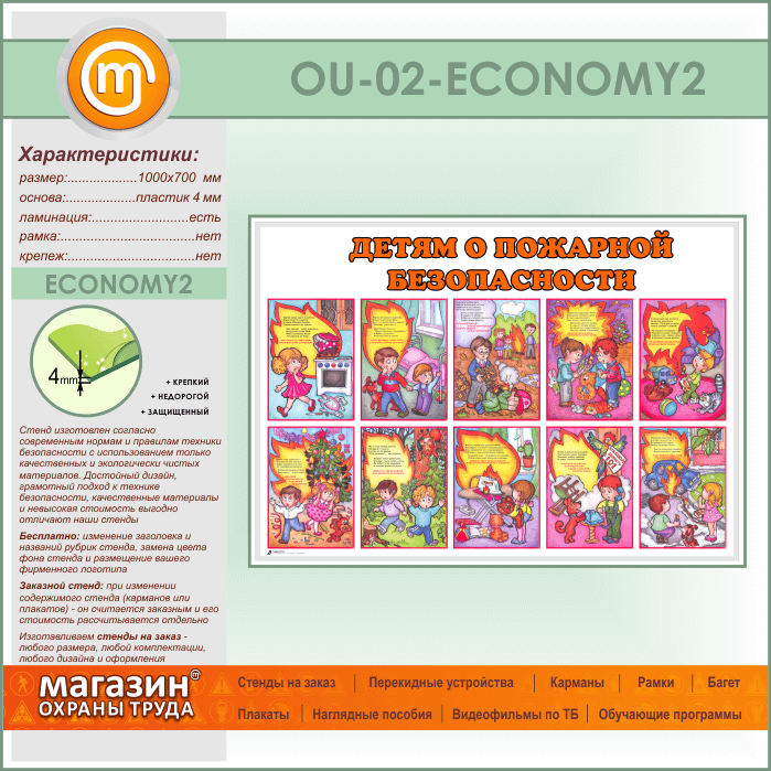 Стенд «Детям о пожарной безопасности» (OU-02-ECONOMY2) в Волгограде купить