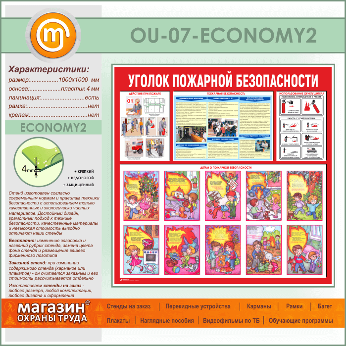 Стенд «Уголок пожарной безопасности» (OU-07-ECONOMY2) в Волгограде купить