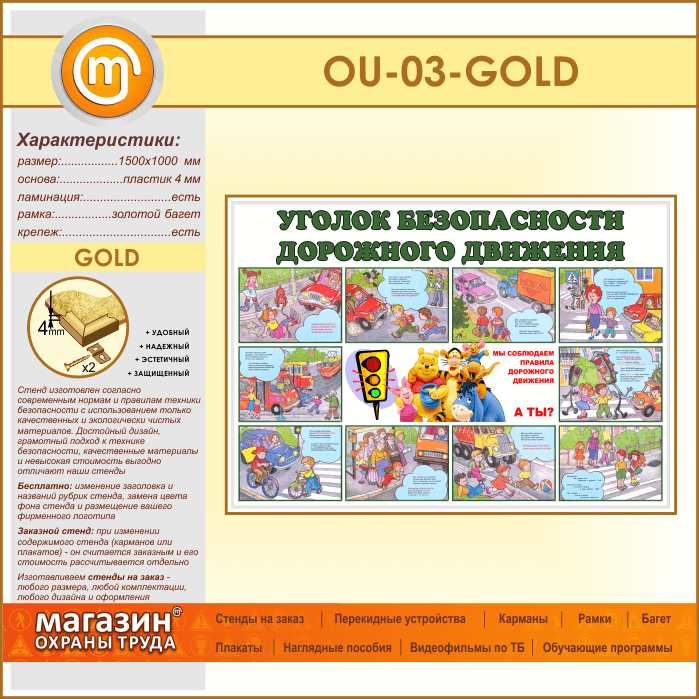 Стенд «Уголок безопасности дорожного движения» (OU-03-GOLD) в Волгограде купить