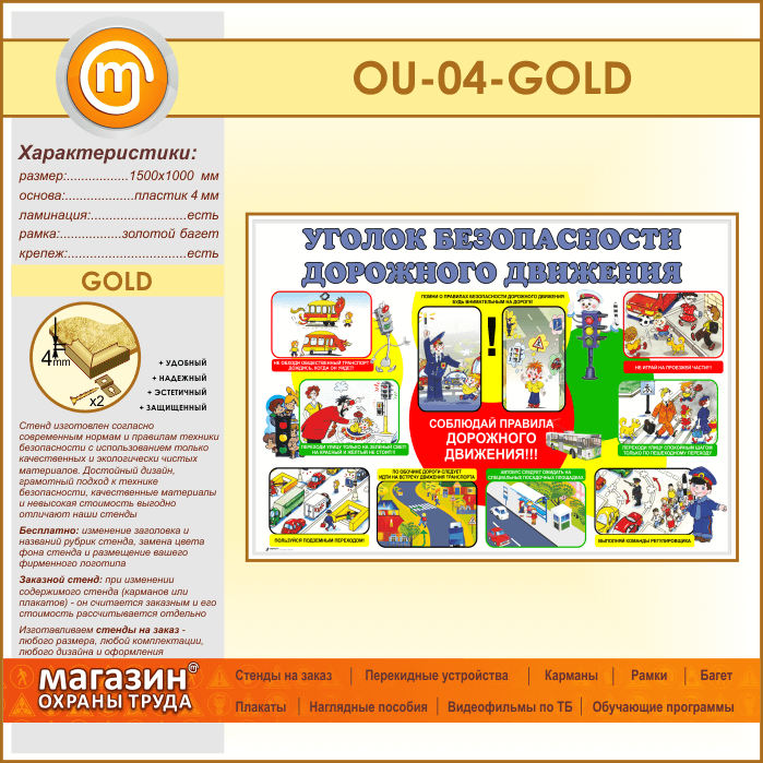 Стенд «Уголок безопасности дорожного движения» (OU-04-GOLD) в Волгограде купить