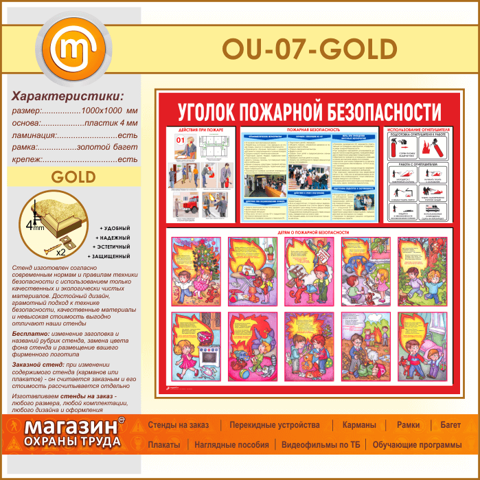 Стенд «Уголок пожарной безопасности» (OU-07-GOLD) в Волгограде купить