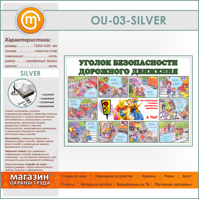 Стенд «Уголок безопасности дорожного движения» (OU-03-SILVER) в Волгограде купить