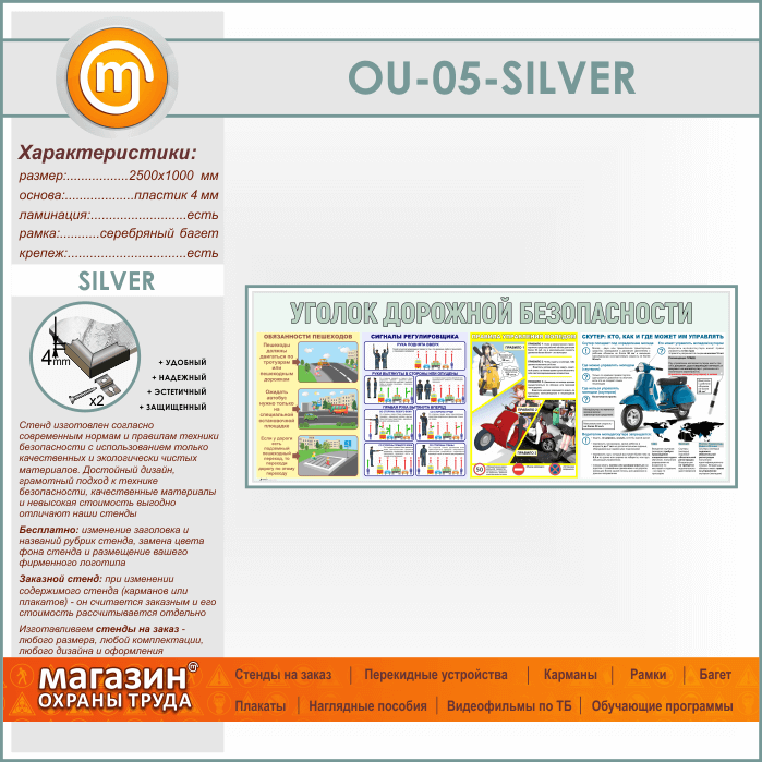 Стенд «Уголок дорожной безопасности» (OU-05-SILVER) в Волгограде купить