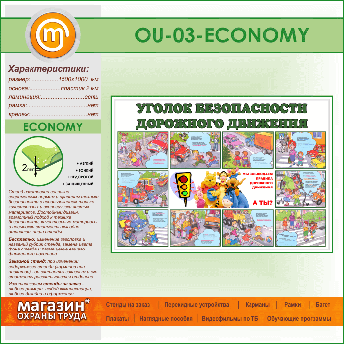 Стенд «Уголок безопасности дорожного движения» (OU-03-ECONOMY) в Волгограде купить