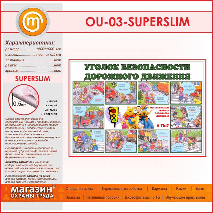 Стенд «Уголок безопасности дорожного движения» (OU-03-SUPERSLIM) в Волгограде купить