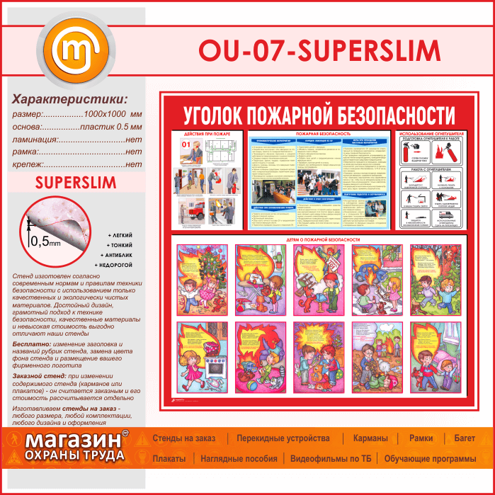 Стенд «Уголок пожарной безопасности» (OU-07-SUPERSLIM) в Волгограде купить