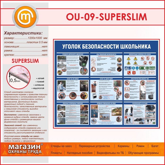 Стенд «Уголок безопасности школьника» (OU-09-SUPERSLIM) в Волгограде купить