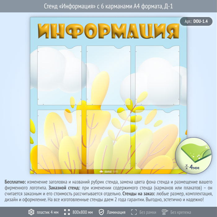 Стенд «Информация» с 6 карманами А4 формата (DOU-1.4) в Волгограде купить