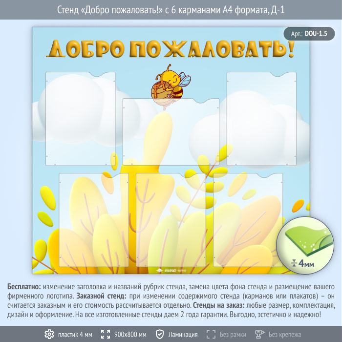 Стенд «Добро пожаловать!» с 6 карманами А4 формата (DOU-1.5) в Волгограде купить