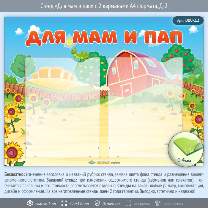 Стенд «Для мам и пап» с 2 карманами А4 формата (DOU-2.2) в Волгограде купить