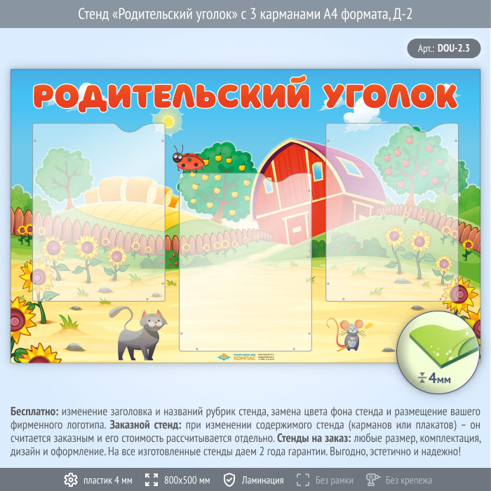 Стенд «Родительский уголок» с 3 карманами А4 формата (DOU-2.3) в Волгограде купить