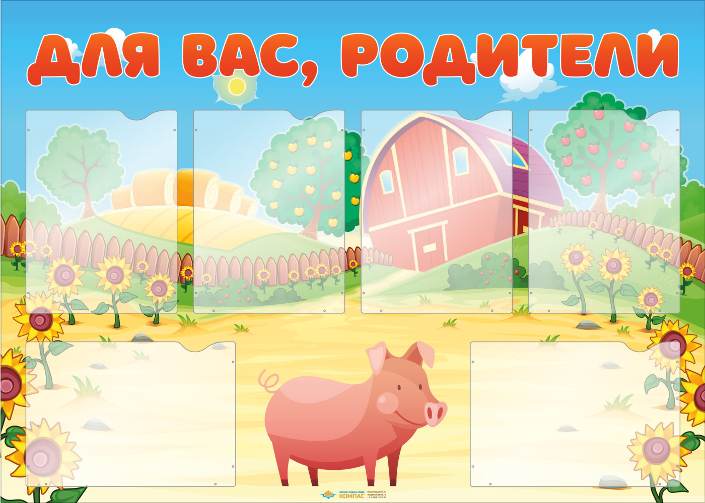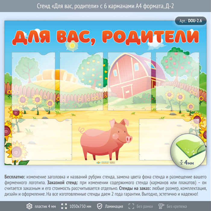 Стенд «Для вас, родители» с 6 карманами А4 формата (DOU-2.6) в Волгограде купить