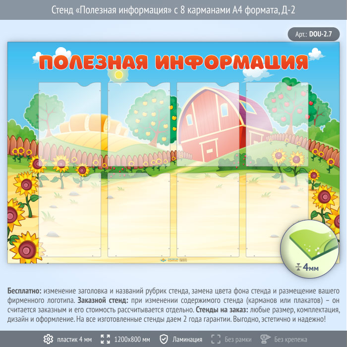 Стенд «Полезная информация» с 8 карманами А4 формата (DOU-2.7) в Волгограде купить