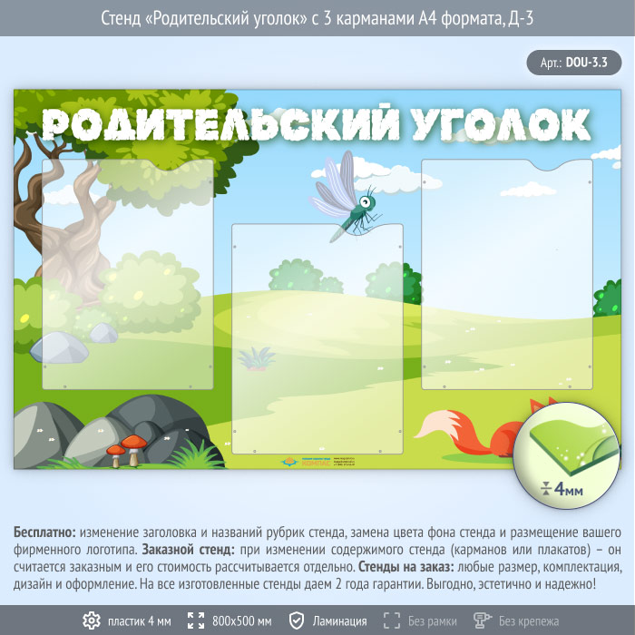 Стенд «Родительский уголок» с 3 карманами А4 формата (DOU-3.3) в Волгограде купить