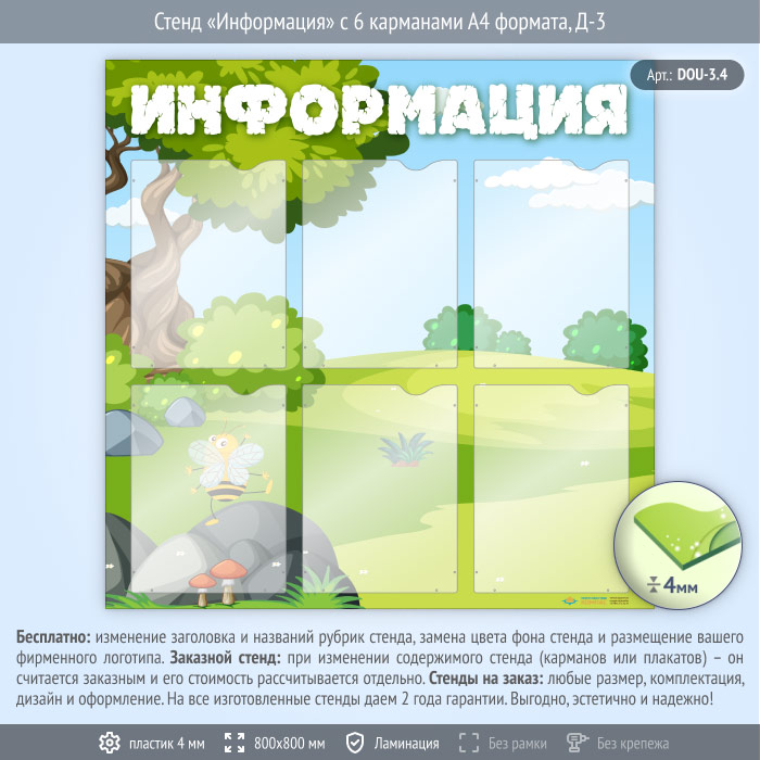 Стенд «Информация» с 6 карманами А4 формата (DOU-3.4) в Волгограде купить