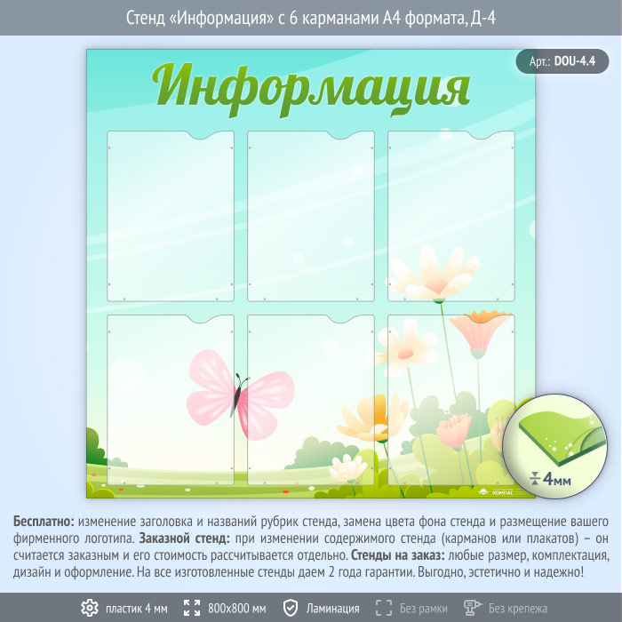 Стенд «Информация» с 6 карманами А4 формата (DOU-4.4) в Волгограде купить
