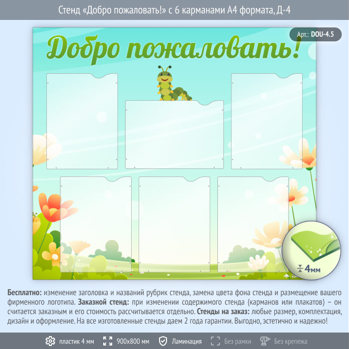 Стенд «Добро пожаловать!» с 6 карманами А4 формата (DOU-4.5) в Волгограде купить