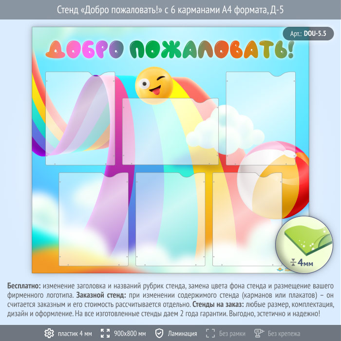 Стенд «Добро пожаловать!» с 6 карманами А4 формата (DOU-5.5) в Волгограде купить