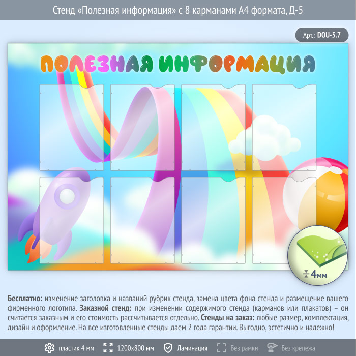 Стенд «Полезная информация» с 8 карманами А4 формата (DOU-5.7) в Волгограде купить