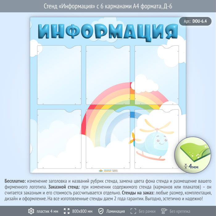 Стенд «Информация» с 6 карманами А4 формата (DOU-6.4) в Волгограде купить