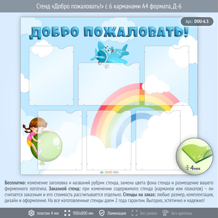 Стенд «Добро пожаловать!» с 6 карманами А4 формата (DOU-6.5) в Волгограде купить